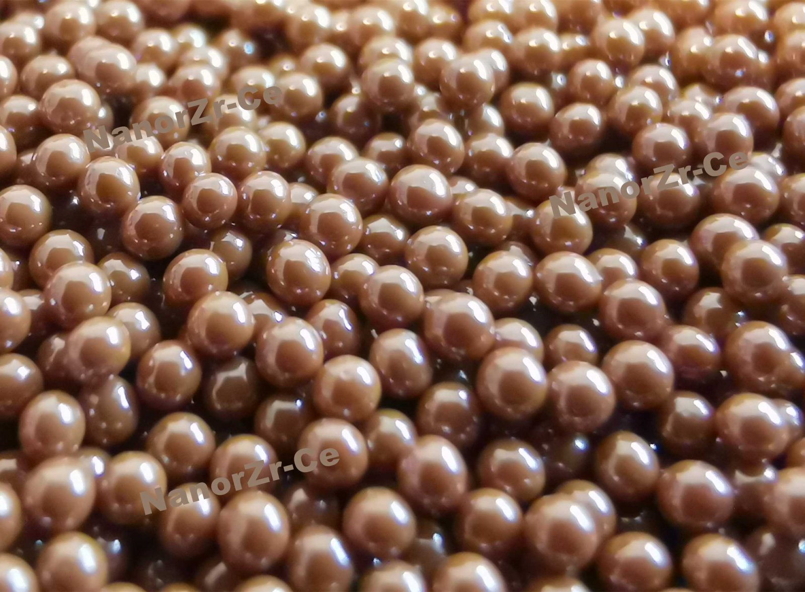 耐诺铈稳定氧化锆珠NanorZr-Ce,粒径从0.3mm到2.5mm。饱满的球度、精准的粒径分布、均匀的颜色和致密的内部晶相结构,在保证国外相似的产品质量上又上一台阶,密度可达6.2kg/dm3,研磨效率可提高20-30%,使用寿命比传统滚动工艺延长30%。特别是现在更严历的环保要求下,涂料和油墨的固含量越来越高,一方面可以提高产能,另一方面大大降低VOC的排放。珠子光滑的工作表面可降低对砂磨机的内筒和分散器的磨损,同时相对钇稳定氧化锆珠具有明显的成本优势,特别适合高固相、高粘度的涂料和油墨的高效的研磨。